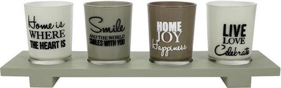 Set van 4 waxinelichthouders. Geleverd met plateau